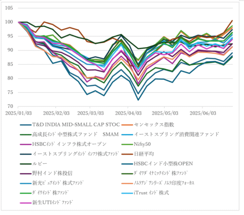 インド株式指数・年初来騰落率(2025年6月27日時点)