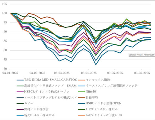 インド株式指数・年初来騰落率(2025年6月13日時点)